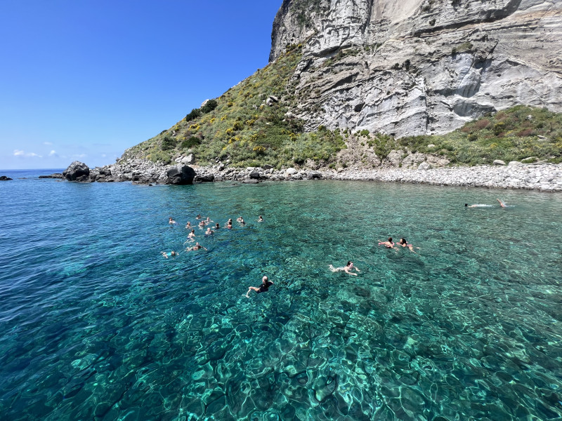 Your 5 hours boat excursion, weather and waves permitting, circumnavigates the entire island of Ponza and stops 4-5 times in the island's most scenic swimming stops. At each stop you will have time to swim, snorkel, sunbathe and possible even swim inside a blue grotto (sea cave) or two!