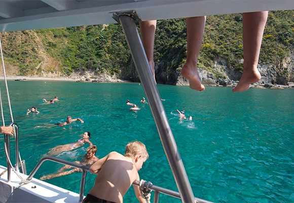 Lunchtime features an extended stop during which the captain and his first make will prepare a simple pic-nic style pasta lunch served on board with water, wine and espresso. You'll share this experience with other Italians who are on vacation - just you like you - which will give you the unique opportunity to indulge yourself in local culture.
